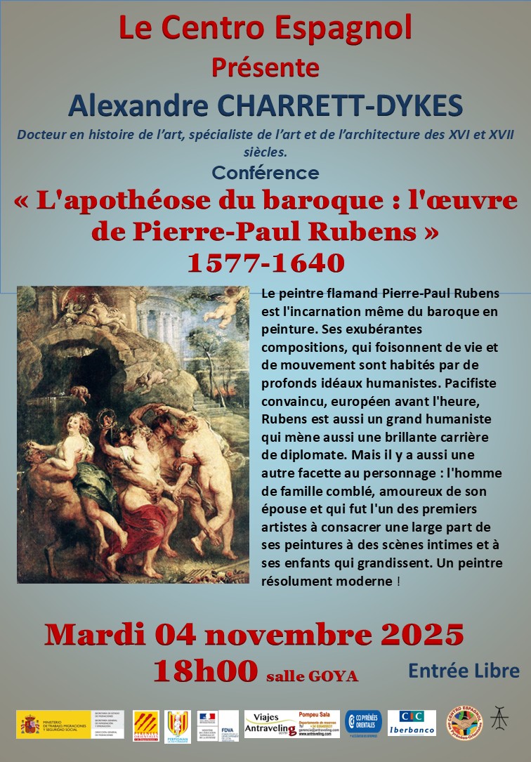 Mardi 4 novembre à 18h salle Goya, conférence d’Alexandre Charrett-Dykes, docteur en histoire de l’art : L’apothéose du baroque : l’oeuvre de Pierre Paul Rubens, 1577-1640.