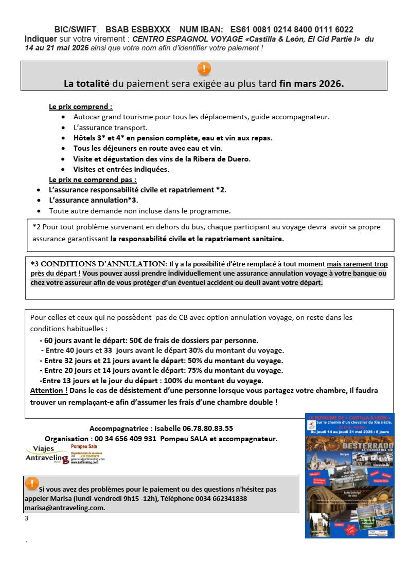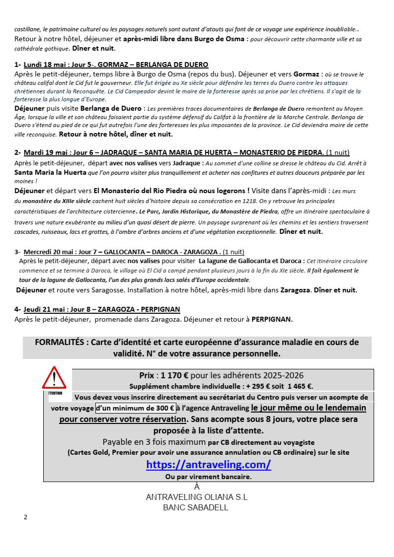 Du 14 au 21 mai 2026, inscriptions au secrétariat à partir du lundi 13 octobre à 9h (uniquement en présentiel le premier jour)