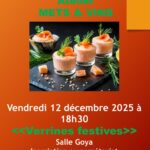 Atelier mets et vins « Verrines festives »12 décembre 2025Vendredi 12 décembre à 18h30, salle Goya : « Verrines festives ». Inscriptions et paiement au secrétariat (23 €). Attention ! nombre de places limité. lire la suite