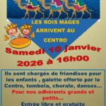 Fête des rois mages11 janvier 2025Samedi 11 janvier à 16h, les Rois mages arrivent au centro pour offrir des friandises aux enfants. Pour les adultes, galettes, cidre, tombola, chants et danses. lire la suite