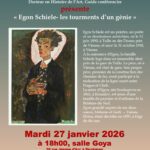 Conférence de Marc Salvan-Guillotin5 janvier 2026Mardi 27 janvier à 18h, salle Goya, conférence de Marc Salvan-Guillotin, docteur en histoire de l’art, guide conférencier. « Egon Schiele – les tourments d’un génie ». Entrée libre. lire la suite