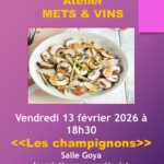 Atelier mets et vins « Les champignons »13 janvier 2026Vendredi 13 février, atelier Mets et vins « le champignon fait la star » Inscriptions au secrétariat avant le 10 février. lire la suite