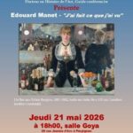 Conférence Edouard Manet « J’ai fait ce que j’ai vu »26 avril 2026Jeudi 21 mai, salle Goya à 18h, conférence de Marc Salvan-Guillotin, historien de l’art, guide conférencier, « Edouard Manet, j’ai fait ce que j’ai vu ». Entrée libre. lire la suite