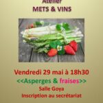Atelier Mets et vins17 octobre 2025Vendredi 17 octobre à 18h30, salle Goya, atelier Mets et vins « Autour du raisin » Inscriptions au secrétariat. lire la suite