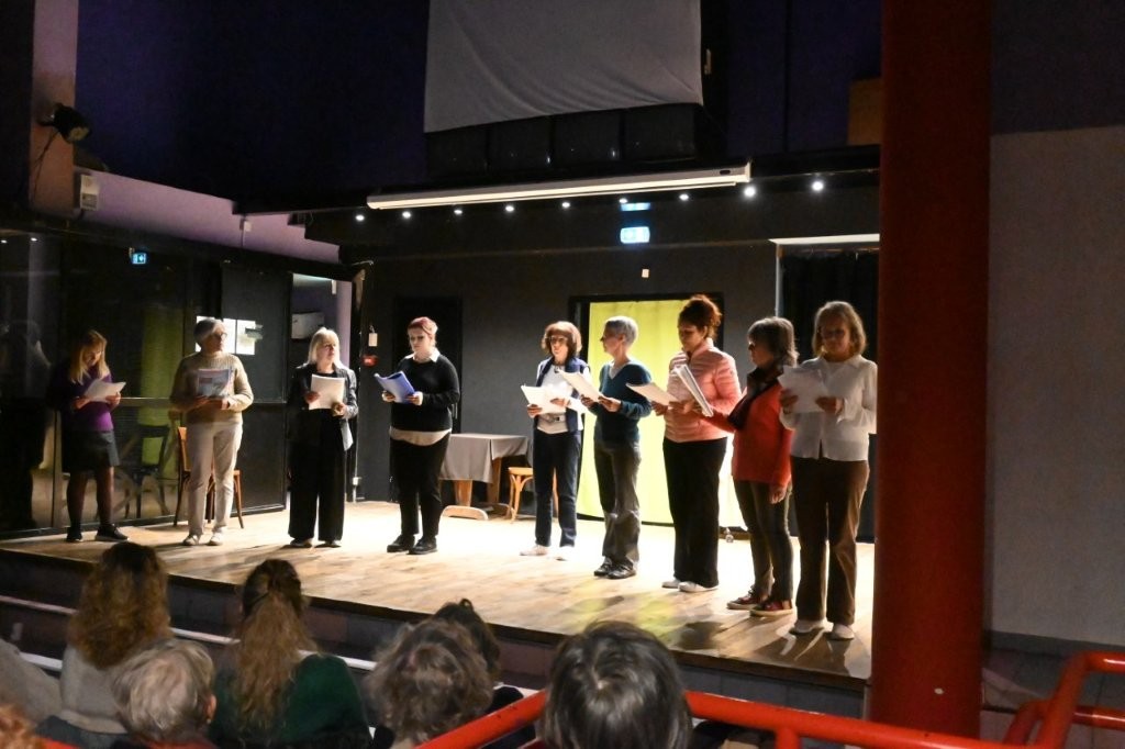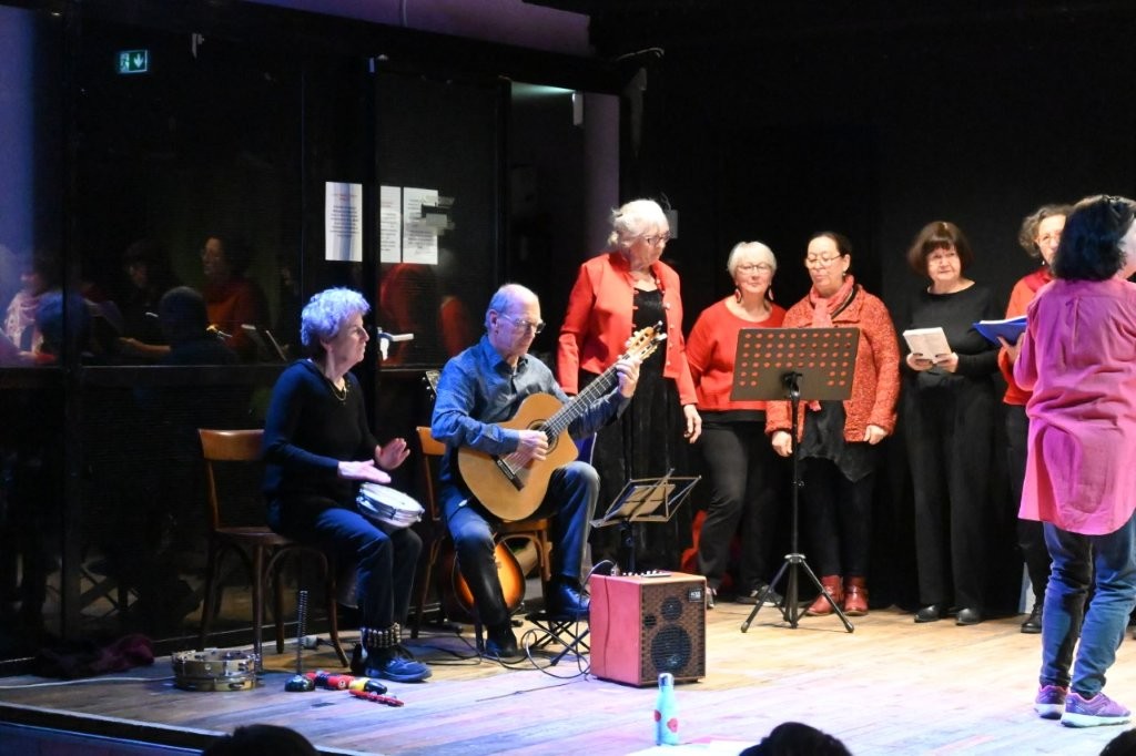 Samedi 14 mars, la sororité s’est exprimée au travers d’un florilège de spectacles  : Laeticia, accompagnée de Jean François à la guitare a chanté « la grenade », les comédien.nes,, sous la direction de Yovalda ont interprété un plaidoyer vibrant en faveur des femmes, la chorale « Les voix libres » ont soulevé l’enthousiasme des spectatrices et spectateurs ravi.es. Un grand bravo à toutes et tous et vivent les femmes.